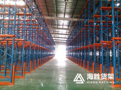 貫通式貨架是一種不以通道分割的、連續(xù)性的整體貨架,在牛腿擱板上,托盤按深度方向上存取,這使得駛?cè)胧截浖艿拇鎯?chǔ)密度高,貨物從貨架的同一側(cè)進(jìn)出,叉車可方便地駛?cè)胴浖苤虚g存取貨物,駛?cè)胧截浖艿耐顿Y成本較低,適用于橫向尺寸較大、品種少、數(shù)量多的情況。由于其存儲(chǔ)密度大,對(duì)地面空間利用率高,常常在冷庫(kù)等存取空間成本高的地方。